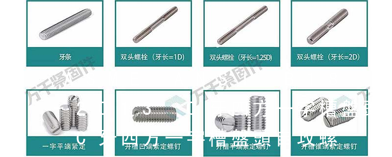 1)開槽普通螺釘多用于較小零件的連接。它有盤頭螺釘、圓柱頭螺釘、半沉頭螺釘和沉頭螺釘。盤頭螺釘和圓柱頭螺釘?shù)尼旑^強度較高,瑁在普通的部件連接上;半沉頭螺釘?shù)念^部呈弧形,安裝后它的頂端略外露,且美觀光滑,一般